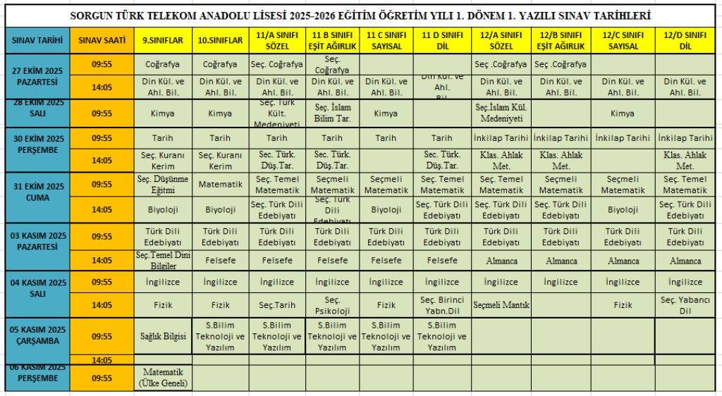 2025-2026 Eğitim Öğretim Yılı 1.Dönem 1.Sınav tarihleri açıklanmıştır. Tüm öğrencilerimize duyurulur.